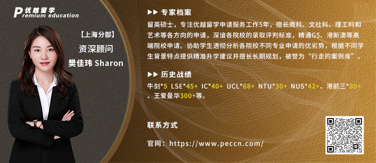 Sharon:8年以上留學行業經驗,擅長商科、文社科、理工科和藝術等各方向的申請,深諳各院校的錄取評判標準,精通G5、港新澳等高端院校申請。協助學生透徹分析各院校不同專業申請的優劣勢,根據不同學生背景特點提供精準升學建議并擅長長期規劃。專業度強、耐心負責、注重細節、被譽為“行走的案例庫”。