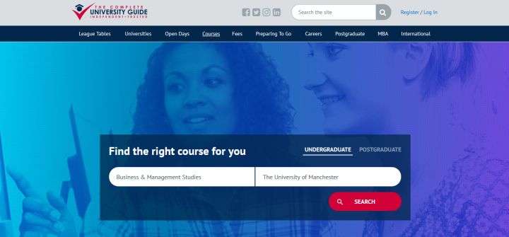 1、通過完全大學指南網站查詢:The Complete University Guide