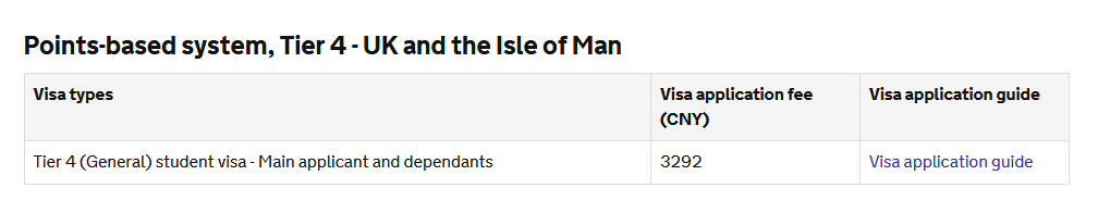 英國留學簽證(Tier4學生簽證):3292元(可在線支付)