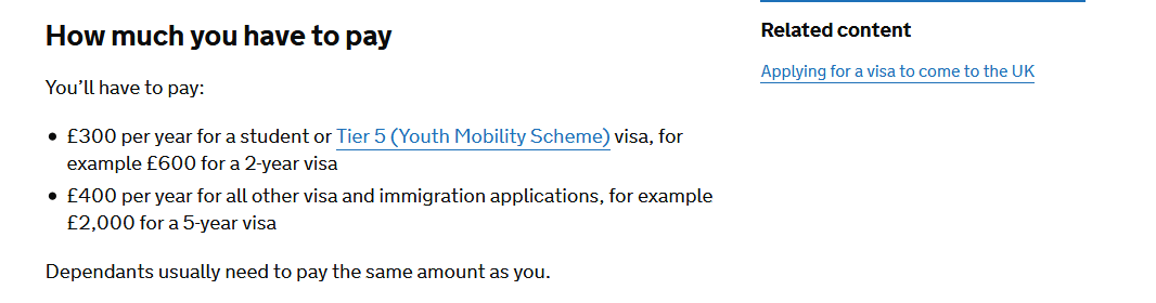 · 醫療附加費(IHS):300英鎊(可在線支付)--如簽證被拒,醫療附加費可退