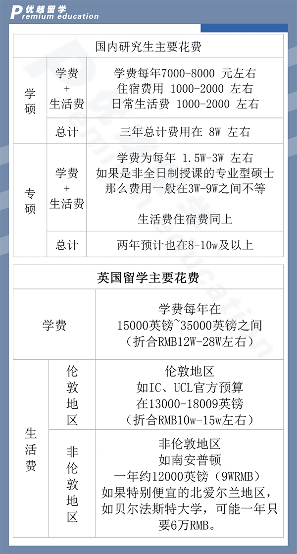 去英國留學的同學,花費基本由學費+生活費兩部分組成。