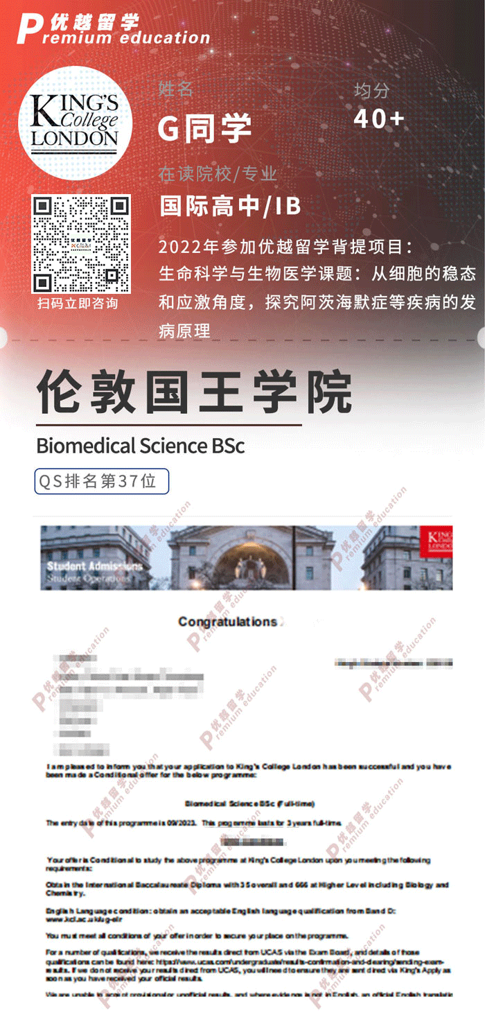 定校時顧問根據同學的軟背景和個人意愿,將KCL作為沖刺院校,同時選定澳洲三個金融類項目作為保底申請。因為澳洲學校排名占優勢,難度又較低,專業對口性的限制又更低,非常適合學生的情況作為備選。最后三所保底院校的offer都收入囊中,更是驚喜拿下了KCL的錄取。