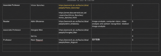 因為tutor本身背景與X同學相似,在選導師時提供了非??煽康慕ㄗh。先重點考察了X同學的夢校和G5院校,找出人工智能研究領域的教授。后續根據專業經驗鎖定華威大學幾位業內優秀導師,其研究領域與X同學的研究計劃課題機器人、三維計算機視覺、自動駕駛高度匹配。這樣套磁成功的把握更大一些。