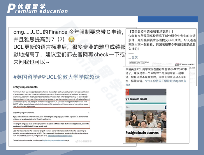 23fall英國研究生申請在新增list、雅思提高的夢幻開局后,英國熱門院校又開始向GMAT/GRE下手了!雖然之前大多英國專業都是不強制需要GMAT/GRE的,但今年也有以UCL為首的院校也將推薦提供GRE/GMAT申請,改成英國研究生申請必須要帶上才能申請。