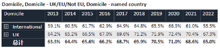 2022年度UCAS共收到了3048480份申請,共發放了1980590份offer,官方公布的offer率約為65%,比前一年下降了3.6%。