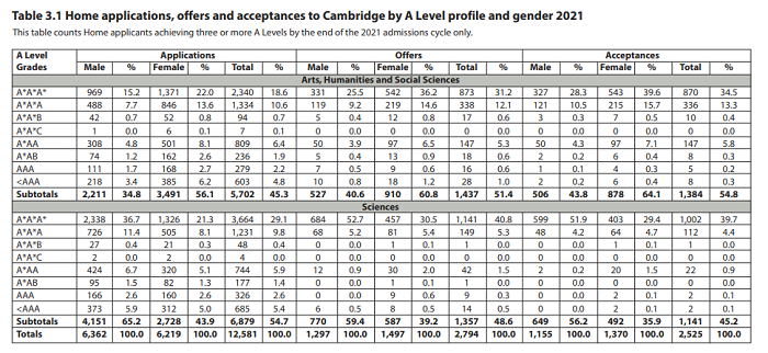 劍橋2021申請周期的本科錄取數據也有顯示,近乎99%的申請者擁有A*AA及以上的A Level成績。具體的數據大家也可參考下圖: