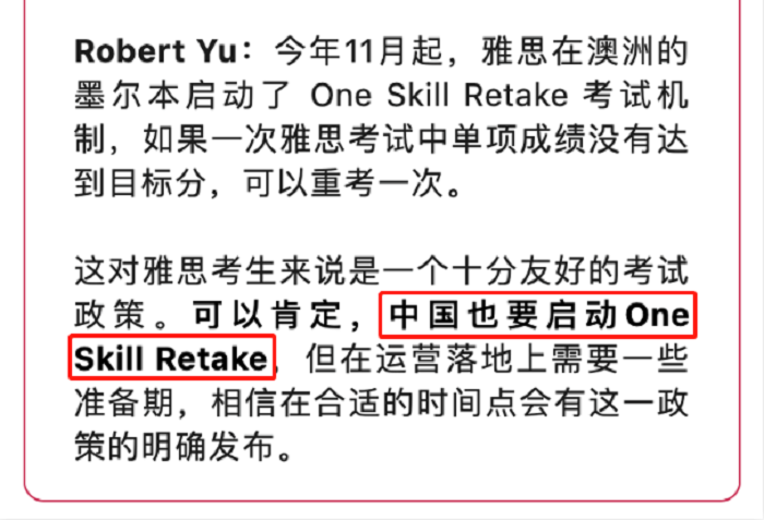 雅思單科重考預計未來在中國開放,但眼下畢竟還沒實行。對于23fall來說,雅思還是“一擊即中”為上策。