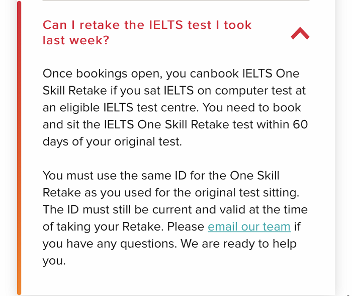 也就是說,未來的雅思考試里,如果你對自己的雅思某個單項成績不滿意,可以重新再考一次聽力/閱讀/寫作/口語。