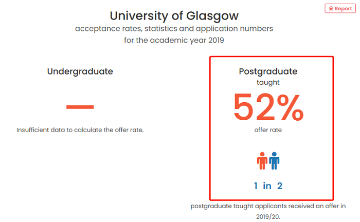 格拉斯哥大學的研究生錄取率為52%,據我們觀察由于格拉斯哥大學其實跟國內不少的大學都是有合作的,申請量大,學校給Offer還是比較慷慨的~