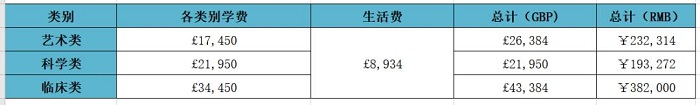 由于倫敦、曼徹斯特等大城市都在英格蘭,因此英格蘭地區的物價與消費水平都會相對其他地區要高不少,生活開銷高了,總體留學費用也就相對高了些,下面以劍橋大學為例,看看具體開銷有哪些: