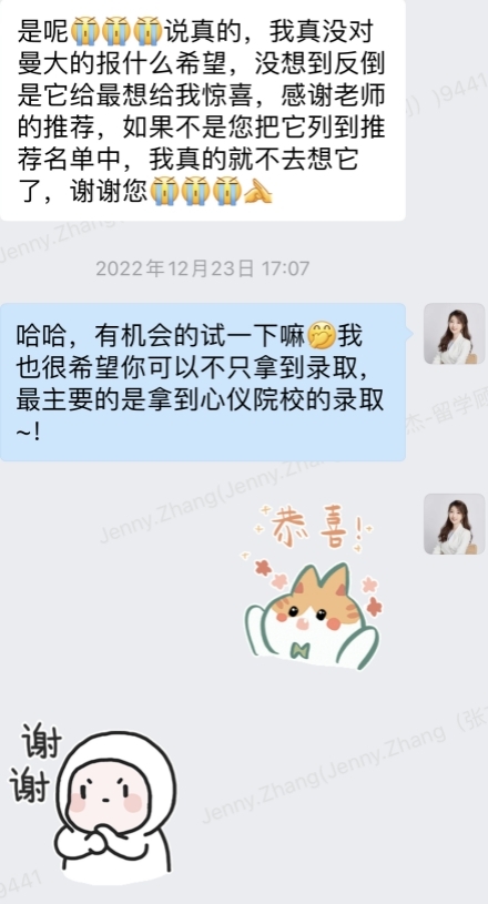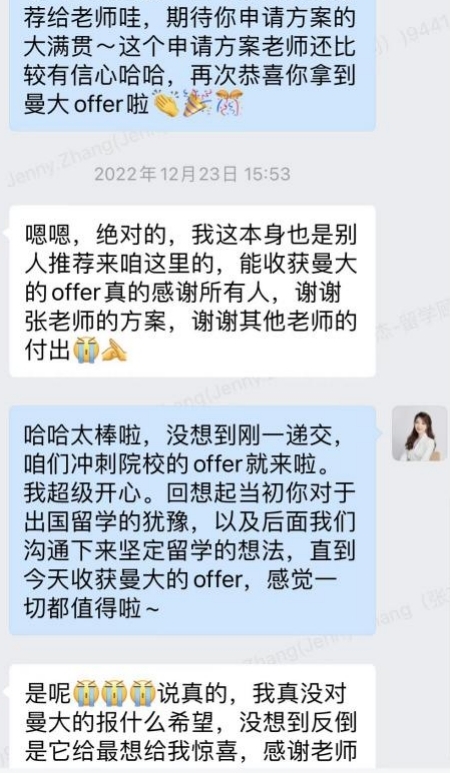該同學本身是雙非院校,不在英國大多前百院校的list里,但老師還是憑借豐富的申請經驗,幫助學生挑選到了夢校曼大的冷門專業進行沖刺。