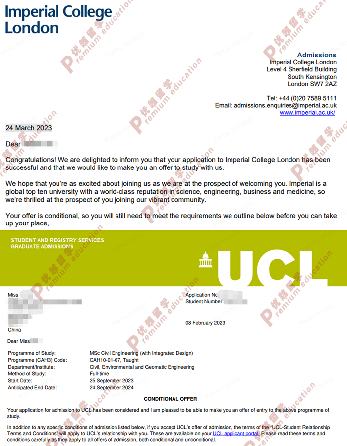 近期顧問老師給優越君分享了一個優秀案例。一位理工科同學考研出分后臨時轉向英國留學,通過顧問老師和文創老師的高效協作,在最后23fall的末期階段同時拿下了帝國理工學院和倫敦大學學院offer。不得不說,這個同學能夠在最后23fall即將結束申請的時候,拿到英國G5這樣的重磅offer非??简炦x專業功力。