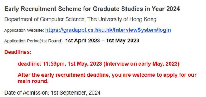 香港大學的CS項目一向炙手可熱,計算機研究型碩士也是最早一批開放提前批申請的項目。