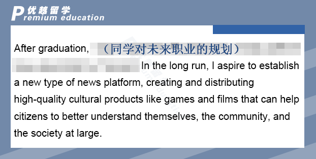 在陳述職業規劃時,不能天馬行空地發散,而應該與院校官方就業方向吻合,不生拉硬拽,這樣所申院校才能看出你與他們的適配度,提升申請成功率。