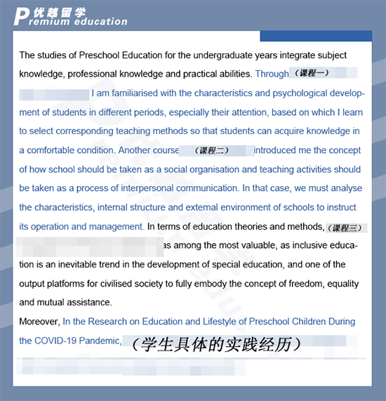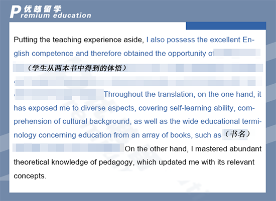 Q同學的文書則會重點敘述眾多實踐經歷帶給其的感悟與價值,以及這些感悟對于個人對于教育專業的理解與思考。