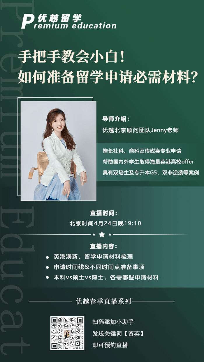 很多學校比如新國立,提前批的申請材料比常規申請的材料更少。準備申請材料是個復雜瑣碎但至關重要的步驟,為了厘清這項大工程,優越君特意邀請了專業資深顧問為大家詳解。