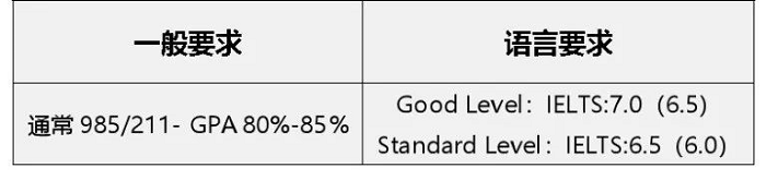 *如申請者本科背景未達到學校要求但滿足2年以上相關工作經驗也可以申請。