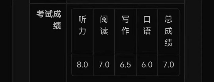 ▲ 大二下學期:準備雅思考試,雅思考試5分(耗時半年)