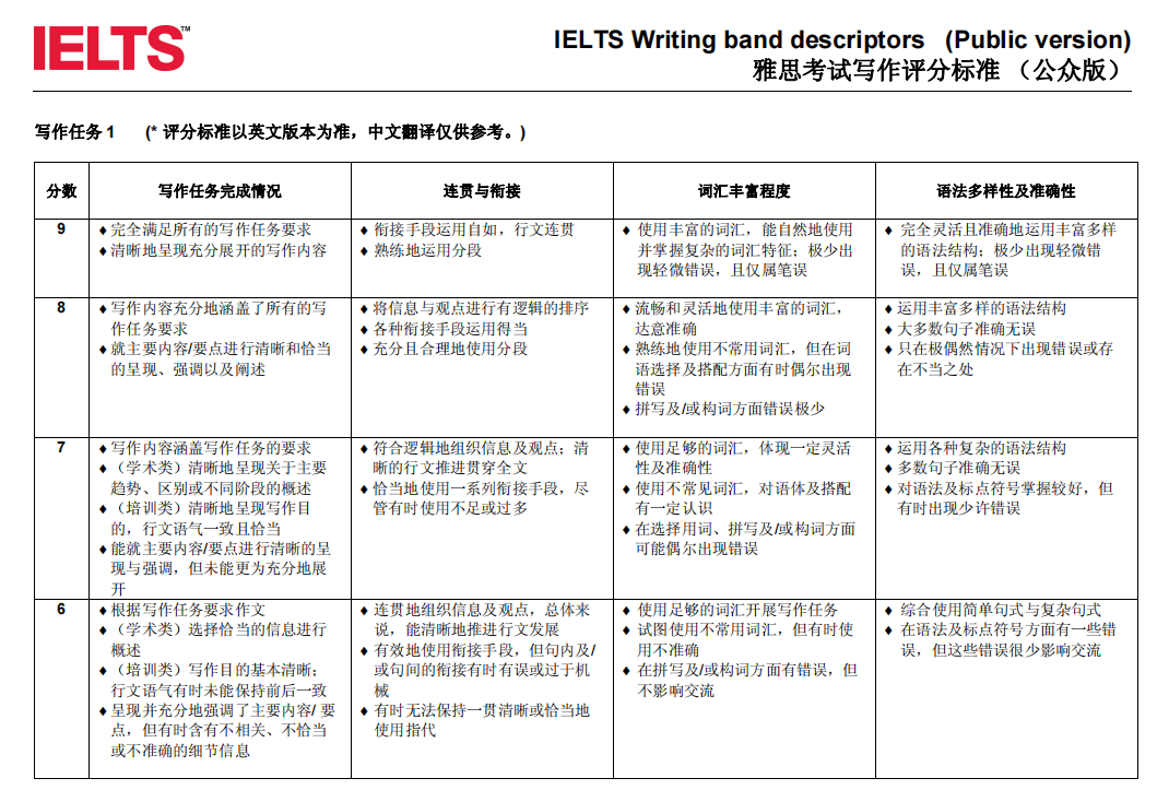 在這里,我們也直觀展示一下,新舊版雅思寫作評分細則。