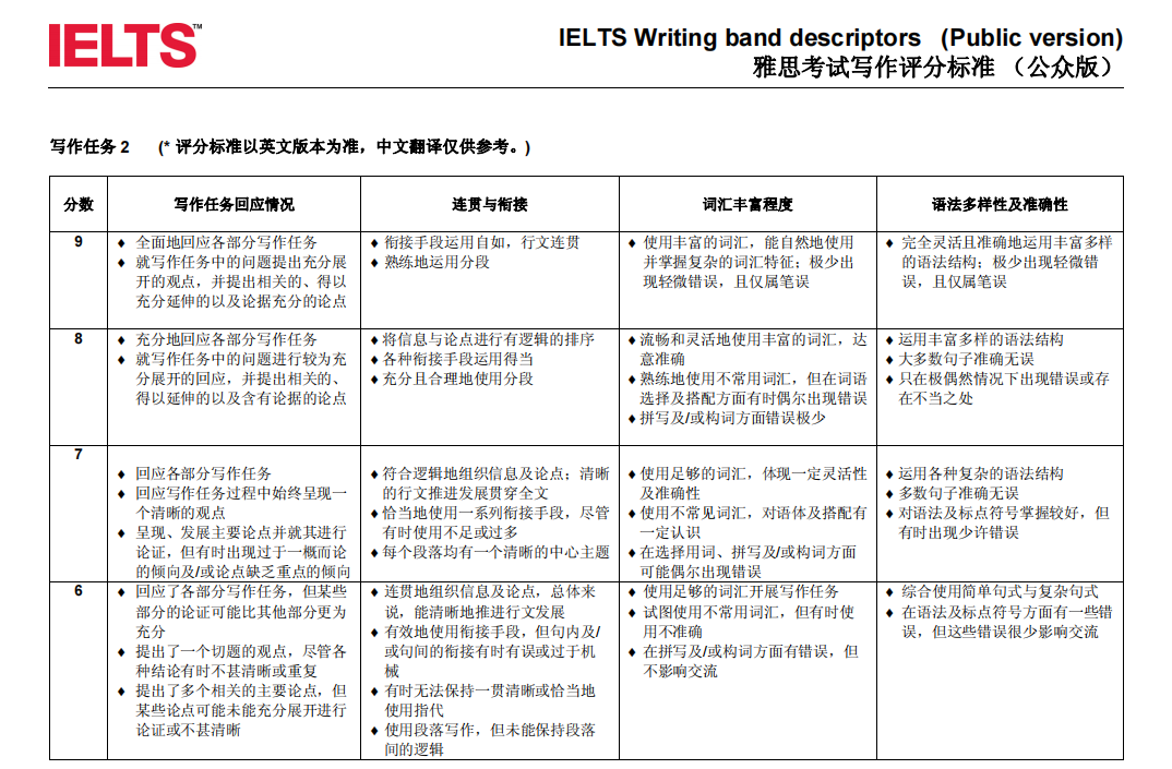在這里,我們也直觀展示一下,新舊版雅思寫作評分細則。