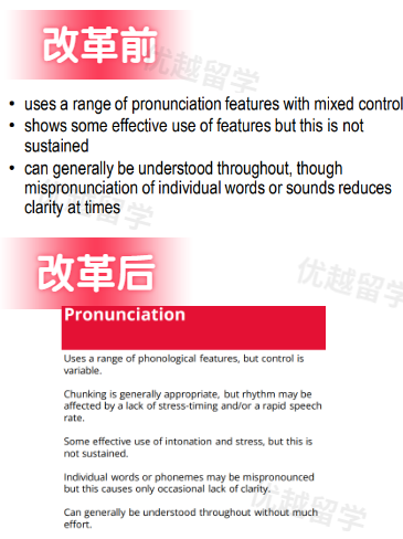 其實,主要是6分段的改變, 更多的是對舊版評分標準內容上的細化和填充,特別是對于發音要求明顯更細節了!