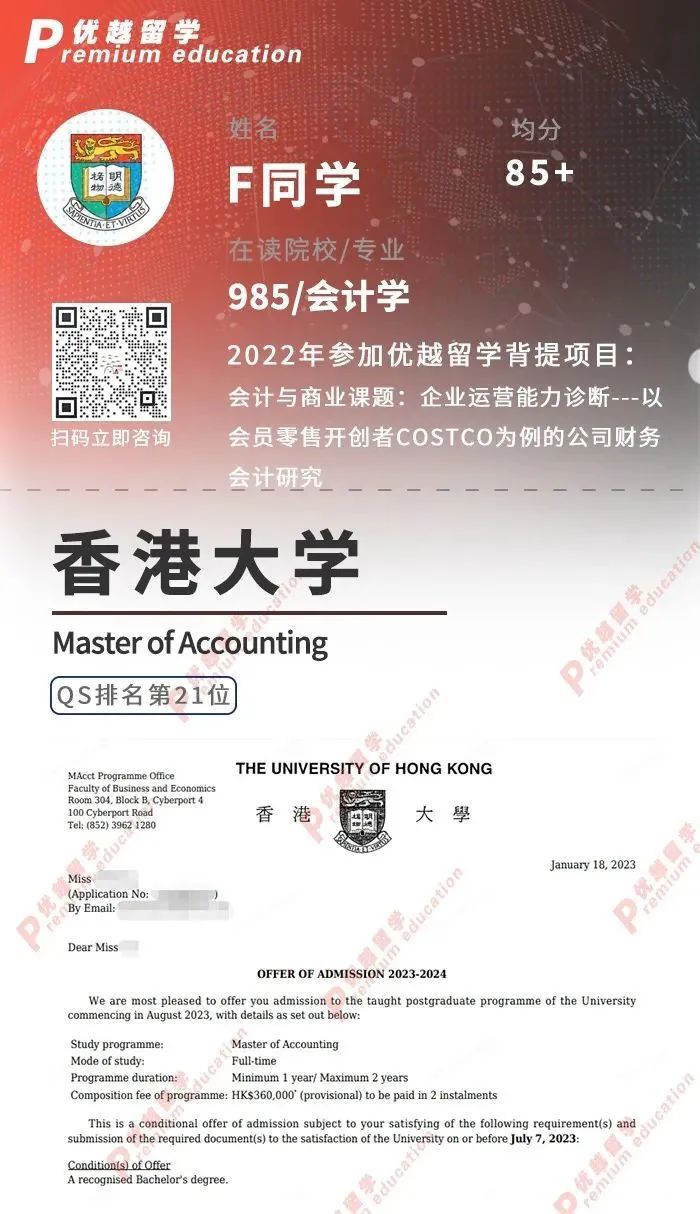 眾所周知,近幾年港理工商科類專業幾乎不怎么接受雙非類院校的學生,盡管如此,優越仍有來自雙非院校的同學收獲了2023申請季里的港理工金融類專業的offer~