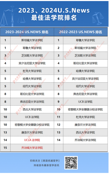 U.S.News近日更新了在官網發布的2023-2024全美最佳研究生法學院排名,讓我們看看又有哪些新變化呢?