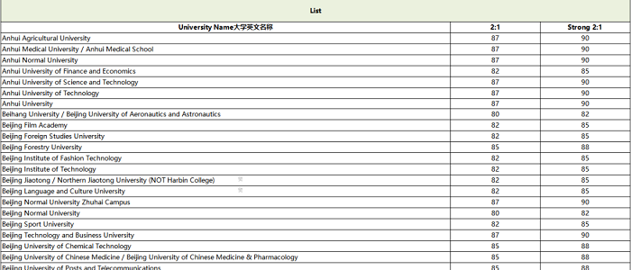 英國的院校把國內院校分為三類,就是大家常說的985院校,211院校,雙非院校。此外,部分院校還會參考國內院校的網大排名或者是上交排名。以及學校自己劃分的list。