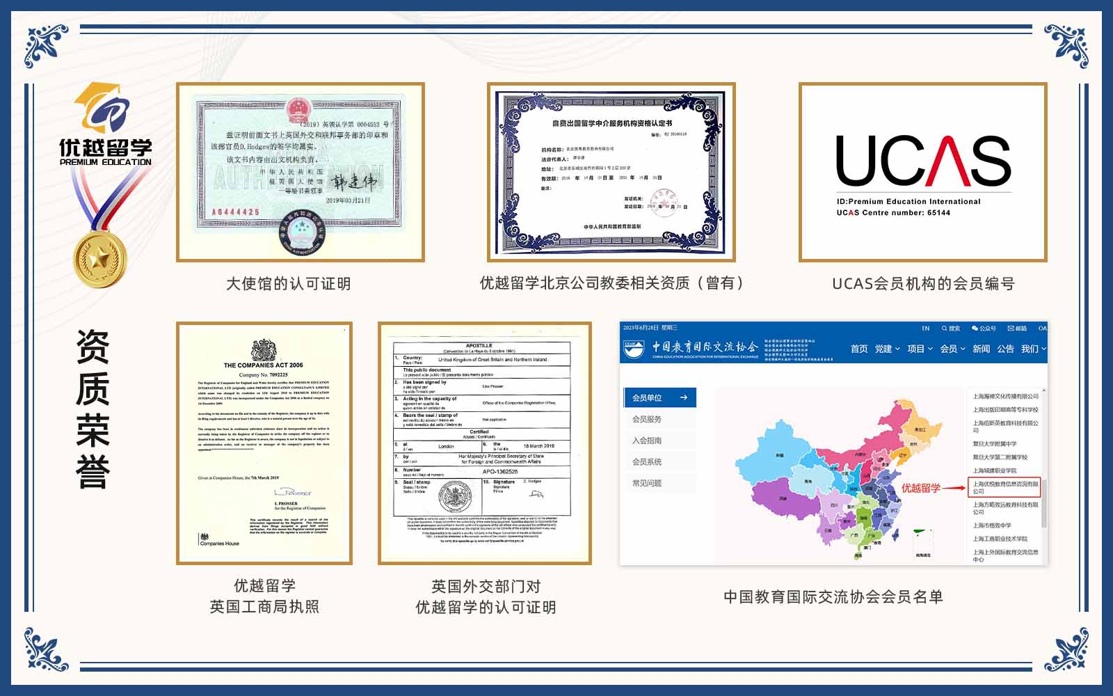 在英國,優越留學受到英國工商局,英國外交部、中國駐英大使館、英國移民局,英國本科官方招生中心(UCAS)等部門多重認證。