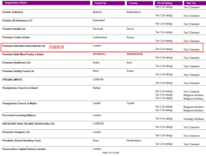資質說明:PREMIUM EDUCATION INTERNATIONAL LTD(優越教育國際)是英國移民局在冊的Tier2 licence sponsor,具備招聘并提供Tier2工作簽證資質。與之對應的是英國大學為留學生提供Tier4簽證。