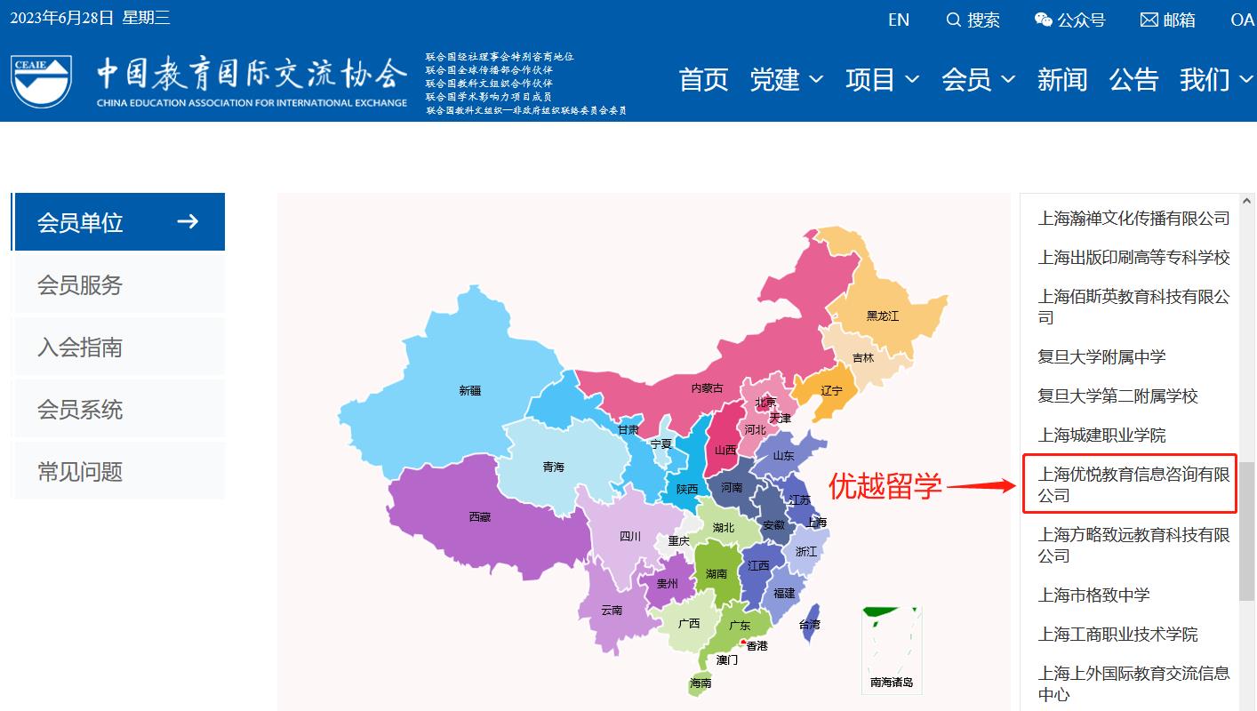 資質說明:經2019年7月召開的中國教育國際交流協會第七屆理事會第三次常務理事大會審議通過,優越留學已正式成為中國教育國際交流協會會員。