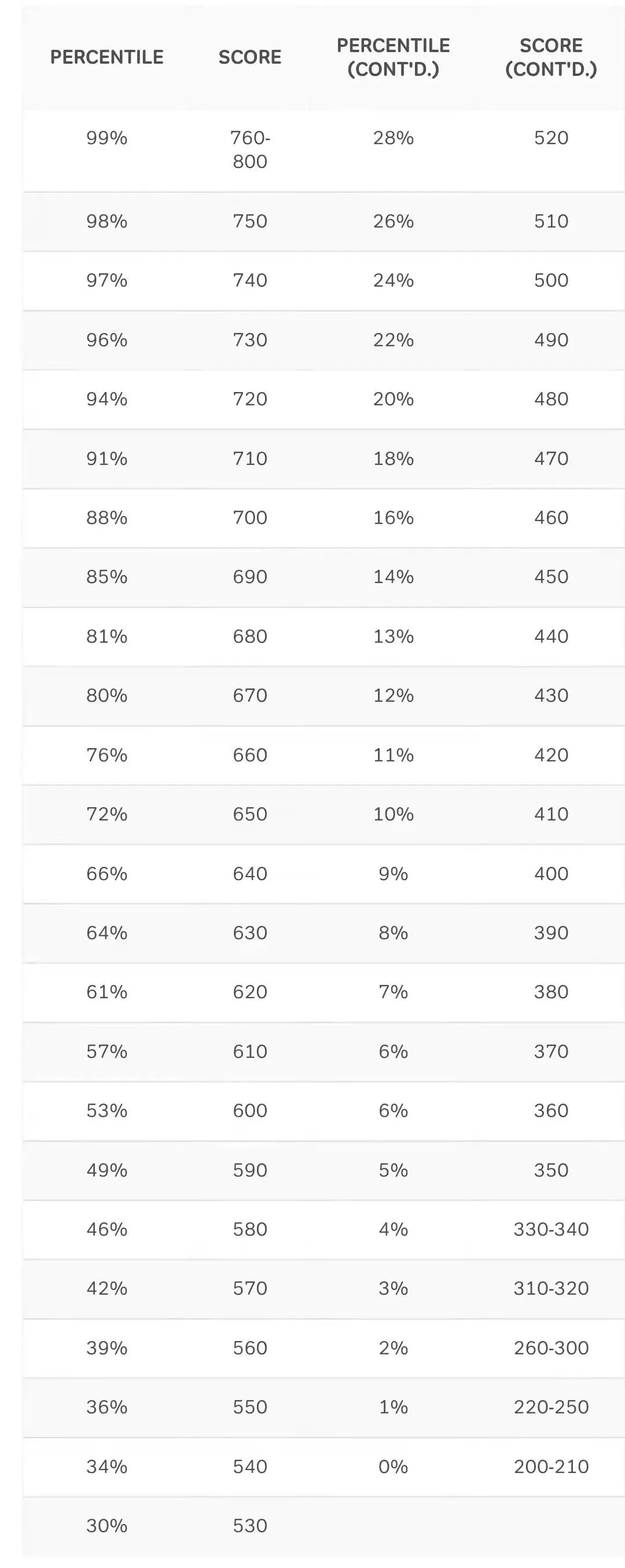 分析寫作最高分為6.0,最小間隔為0.5分。在調取語文和數學的51分分數后,GMAT會使用標準化公式將它們轉換為綜合分數。分數范圍最低為200分,最高為800分,分值間隔的最小單位是10分。