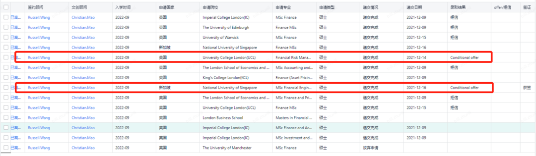 在大四時,開始準備申請美國商學院的研究生,在顧問的幫助下,通過修改文書及軟背景提升,最終拿到了以下兩個學院的Offer。