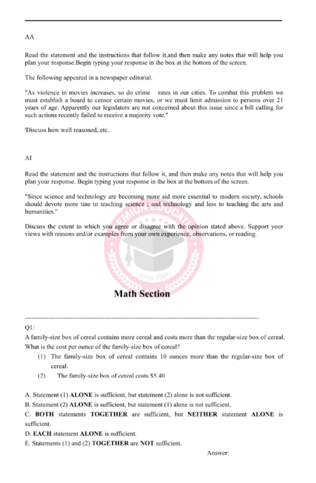 此外,除了考慮申請時間外,考生還可以從自身情況的角度去選擇應該考哪個版本的GMAT。如果考生的強項是語法糾錯,也可以提前準備并考取GMAT現行版。