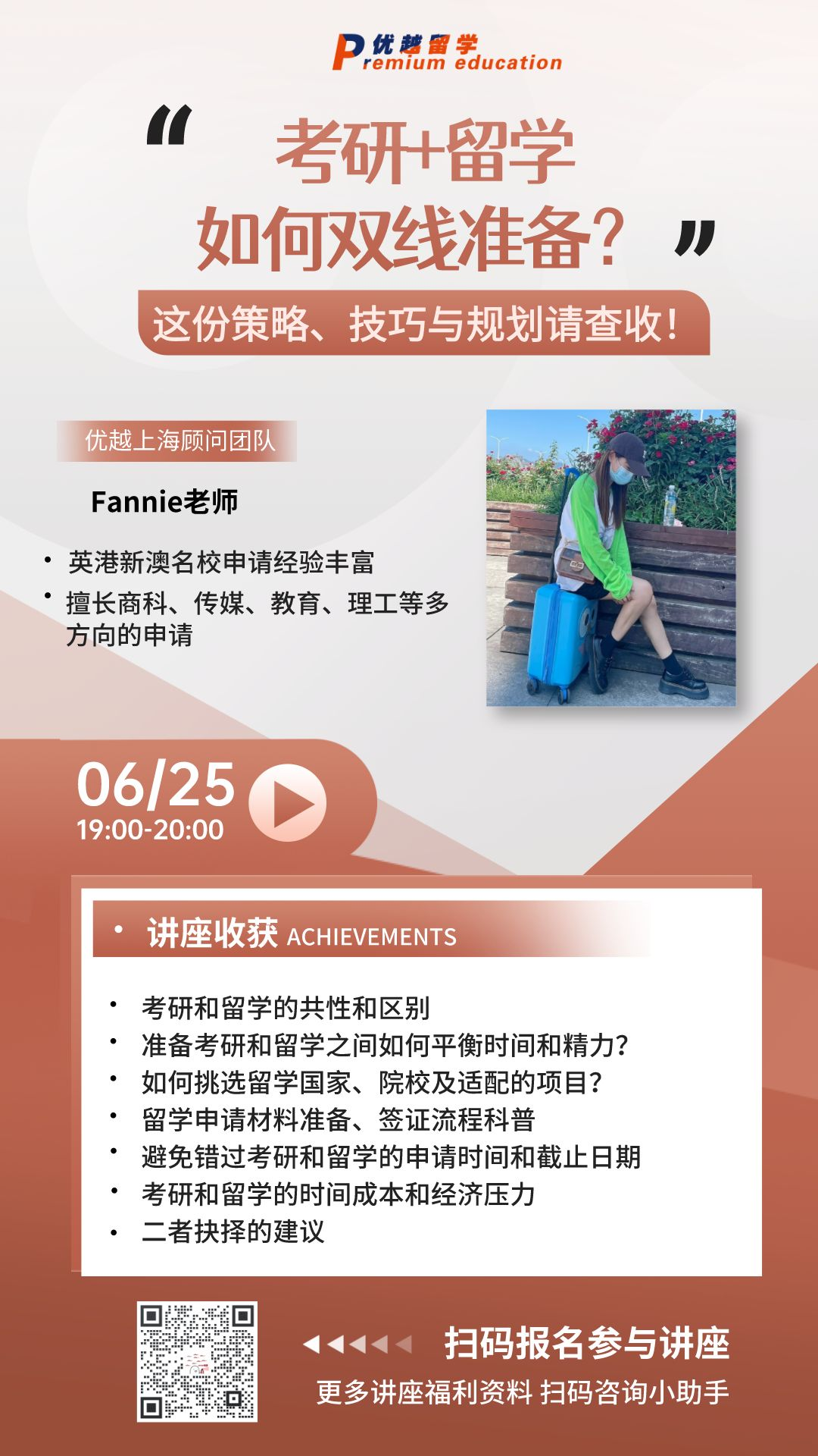 為了幫助同學理清思路,優越直播間將于6月25日分享線上講座:【考研+留學想要雙線準備?這份策略、技巧與規劃請查收!】