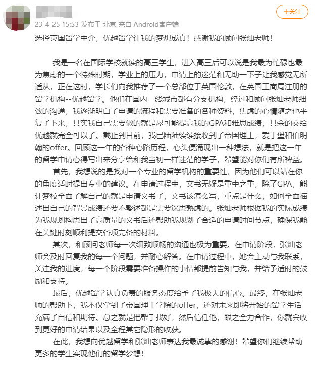 以上是【怎么選英國留學中介機構?英國留學中介機構推薦哪一家?】相關的全部內容,查看更多【英國留學中介】相關資訊可前往【優越留學】首頁!詳細申請規劃及方案定制請預約優越留學顧問為你一對一解答!
