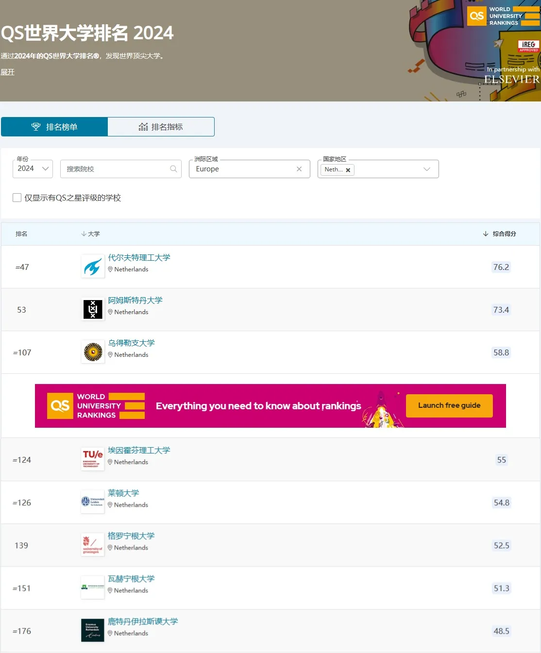 2024QS世界院校榜單,13所荷蘭院校上榜!