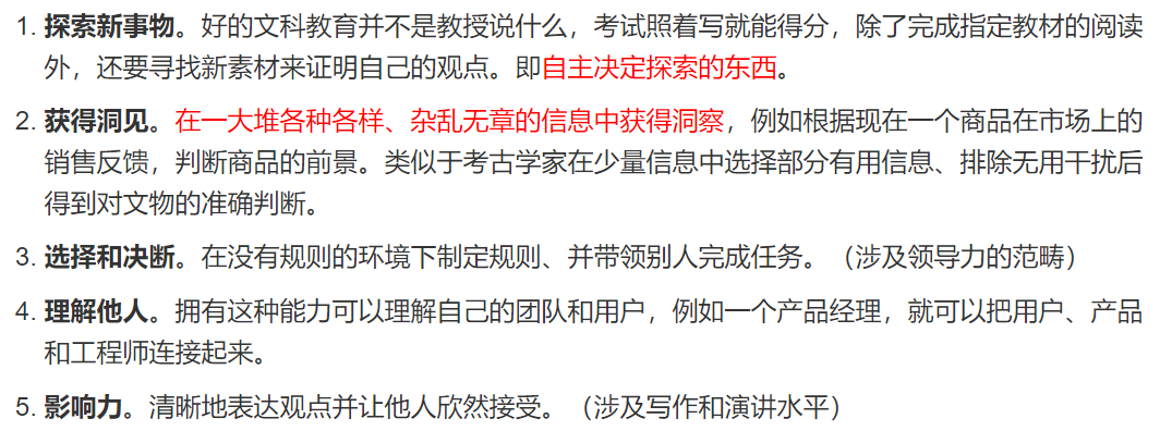 時代眷顧的“文科生”絕非如此,而是思維活泛,能將政史哲作為萬金油,用在各行各業上的“高端文科生”,在美國,這樣的能力被稱為“自由技藝”(Liberal arts)。