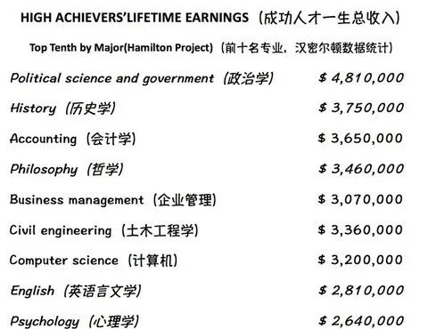 從就業后薪資增長幅度來看,理工生畢業0~5后增長迅速,10年往后態勢疲軟,相反的,文科生開頭雖然緩慢,但只要能穩住積累下真本事,往后工資的增長率會越來越好。