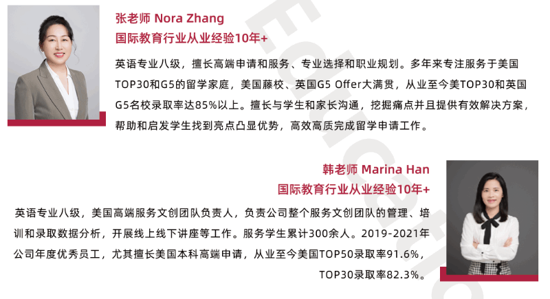 5對1服務:超豪華導師陣容(主規劃導師+資深規劃導師+海外專業導師團隊+高端文創導師團隊+全職高端外籍文書導師團隊),多對一服務?點擊這里獲取更專業美國留學或者多國聯申建議