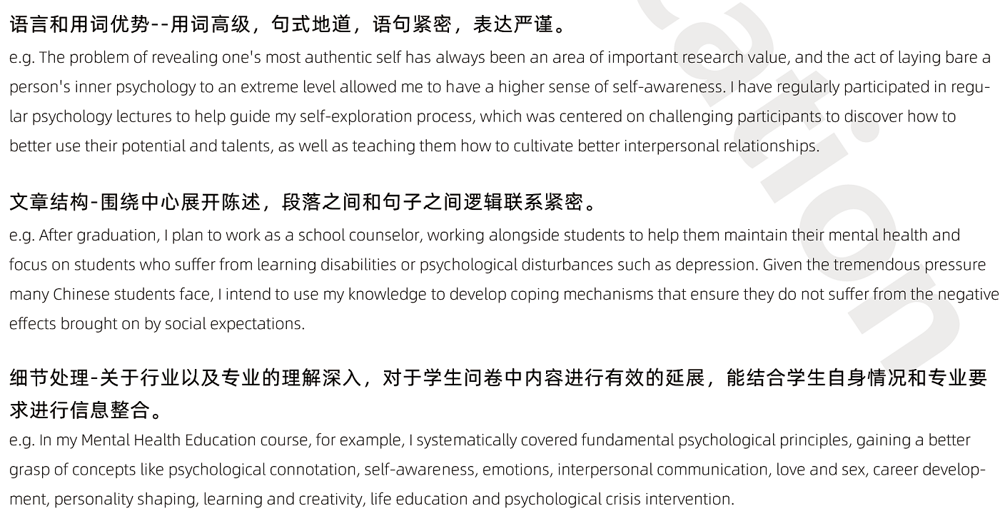 ③在內容和細節上:對于信息的取舍和延展修飾更地道,對于西方專業設置或者行業研究認知更深刻,有核心觀點貫穿文章,有細節案例支撐,文章整體性更強,對于學生人物形象的塑造更加飽滿。