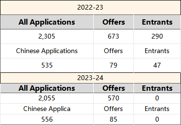 LSE的法學碩士在23fall年中國的申請人數是556人,錄取人數是85人,錄取率僅有15.2%,而且根據近幾年的數據對比來看,錄取率總體還是呈現下滑趨勢,申請者之間的競爭性越來越大。