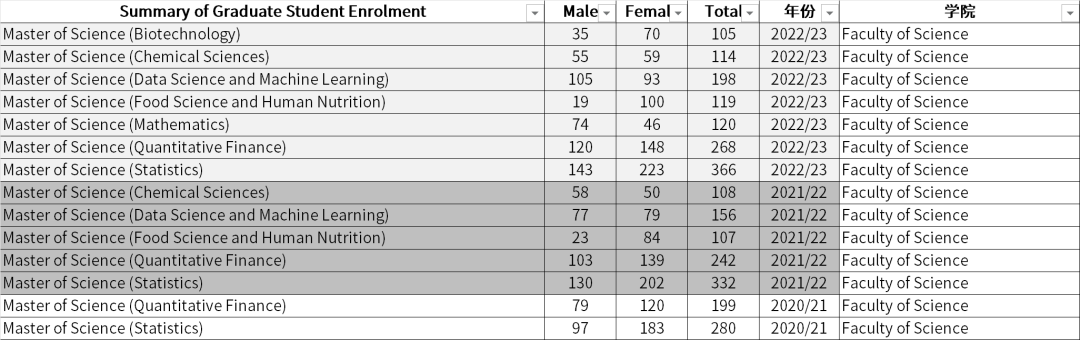 Master of Science(Statistics)和Master of Science(Quantitative Finance)是熱門專業,近三年的招生人數逐年上漲。