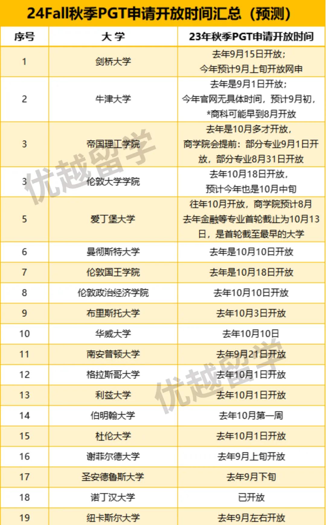 篇幅原因,其他的院校開放網申時間&預測,優越君特別做了一張表格,建議大家馬一下??