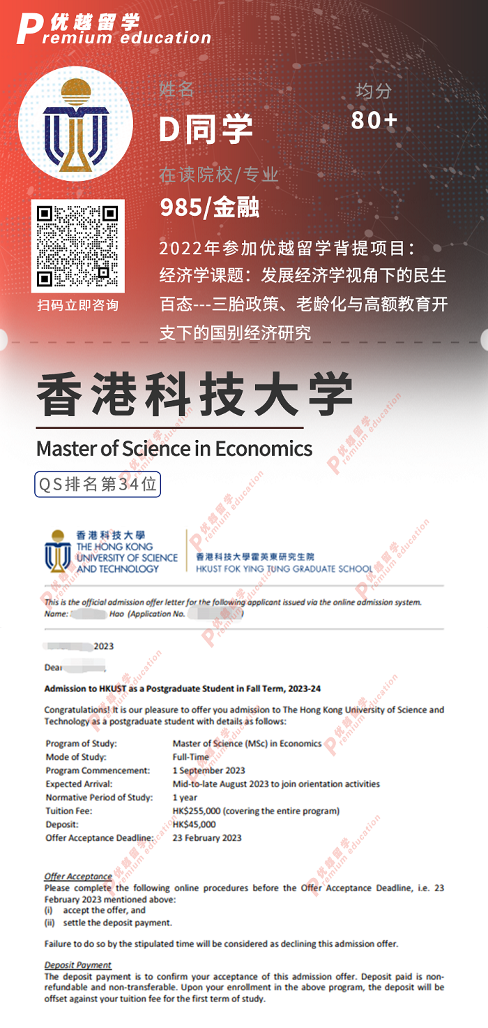 錄取院校:香港科技大學