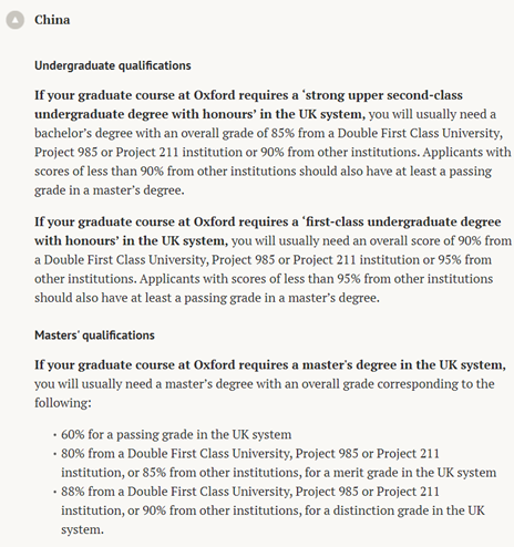 碩士畢業生:如果擁有merit學位,985/211/雙一流均分需要80%以上,雙非需要85%以上;如果是distinction學位,985/211/雙一流均分需要88%以上,雙非需要90%以上。