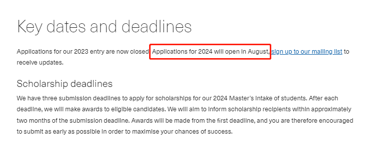 英澳港新很多項目都是 Rolling制度申請,所以本著早申早得的道理,趕在很早的輪次申請也是非常重要的。而且按照目前申請開放趨勢來看,各大高校今年秋申的開放時間應該普遍有所提前,申請節奏比起23Fall會超前一點。所以,還是建議大家千萬提早規劃,早準備,不要錯過最佳遞交時間!