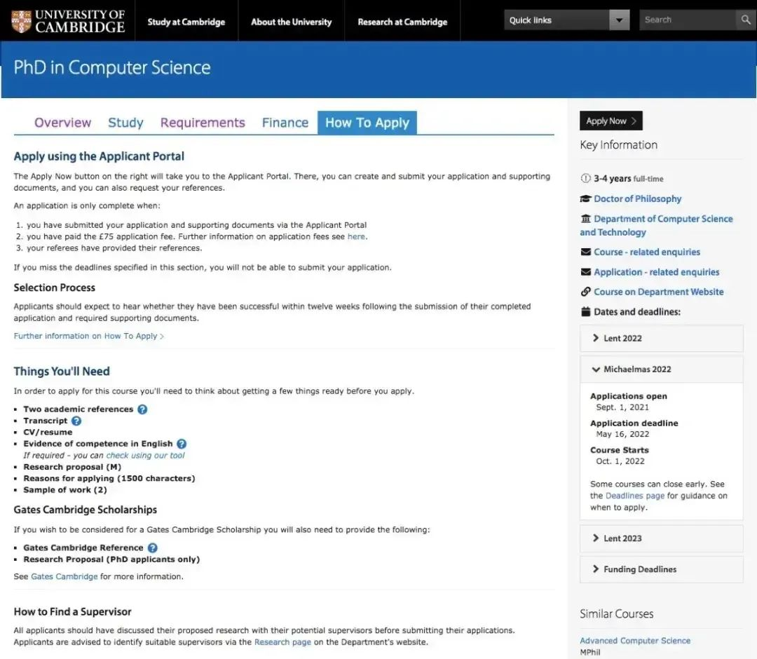 英國的全日制博士學位通常為3-4年。大多數博士項目在每年的9月份開始接受申請,名額有限,先到先得。