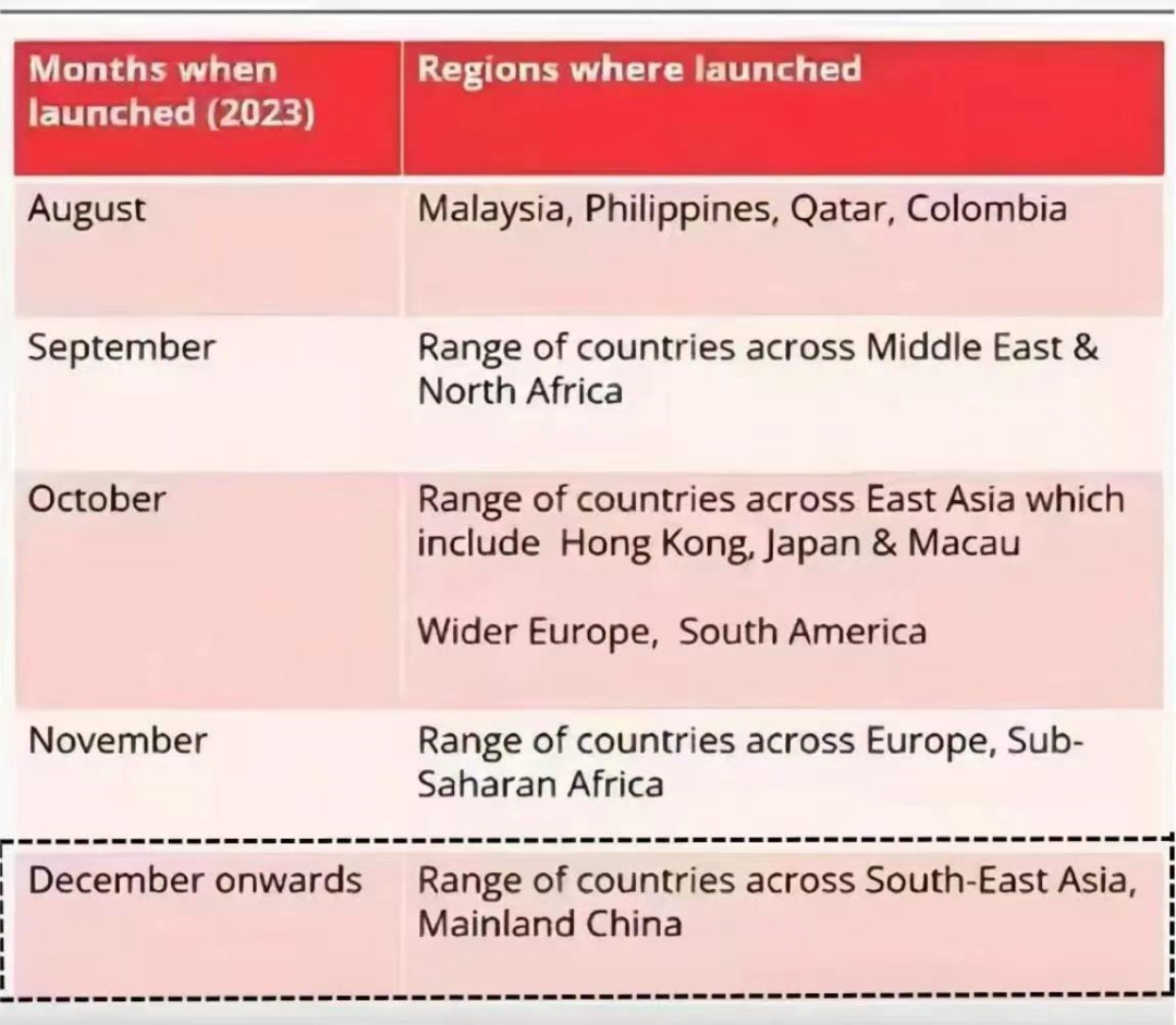 即將開放:馬來西亞、菲律賓、港澳、日本、歐洲地區、內地...