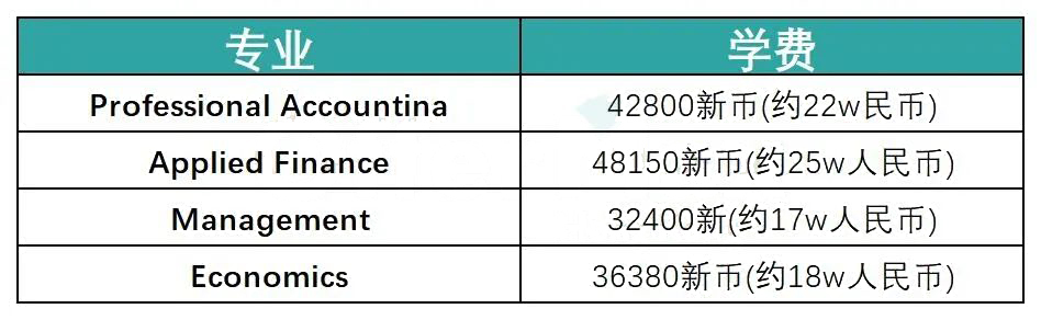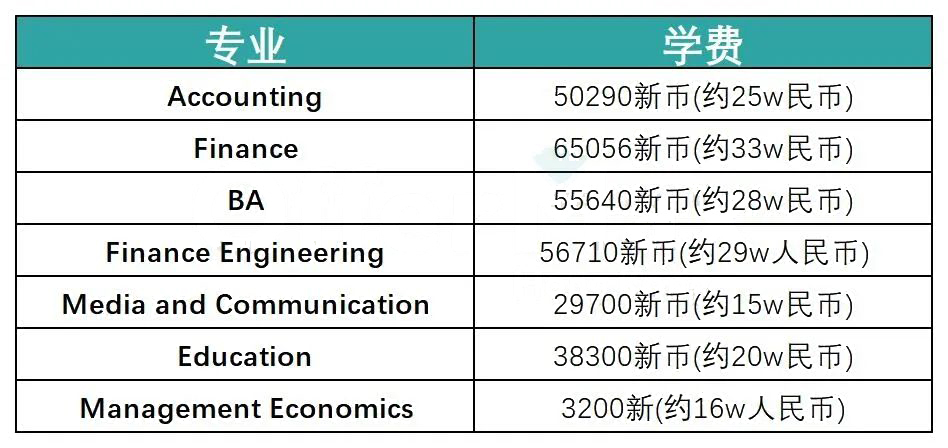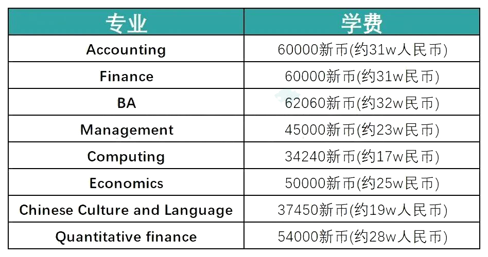 大部分學科在5-6萬新幣左右,約為25-30萬元人民幣(相對于香港的金融專業仍然較為適中)。